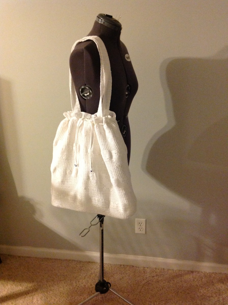 Crocheted tote with quilted lining