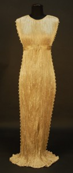 Around that time, Spanish designer Mariano Fortuny Madrazo was in the process of patenting a technique to permanently create hundreds of pleats on silk using heat. One year later, in 1907, he produced the Delphos gown that was inspired by the ancient Greek bronze statue of the Delphic Charioteer. This gown had over twelve hundred pleats and it was designed to be worn without a corsetry and only undergarments. The process of making the pleats was a well-guarded secret that Fortuny took to his grave.