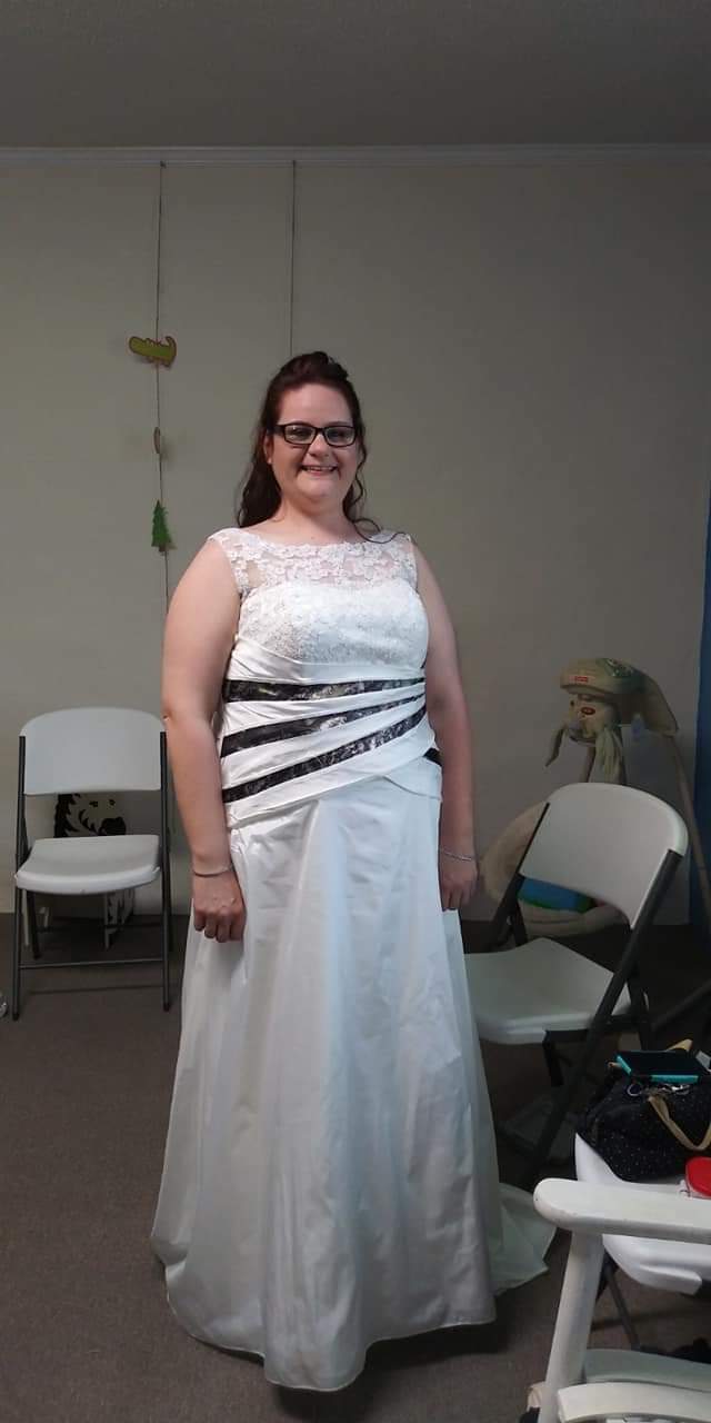 Wedding gown alteration with camouflage strips ← Previous Next → Wedding gown alteration with camouflage satin strips